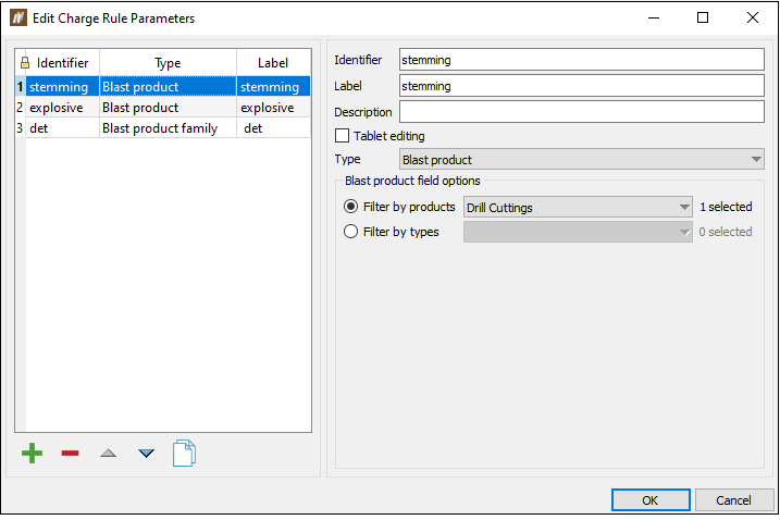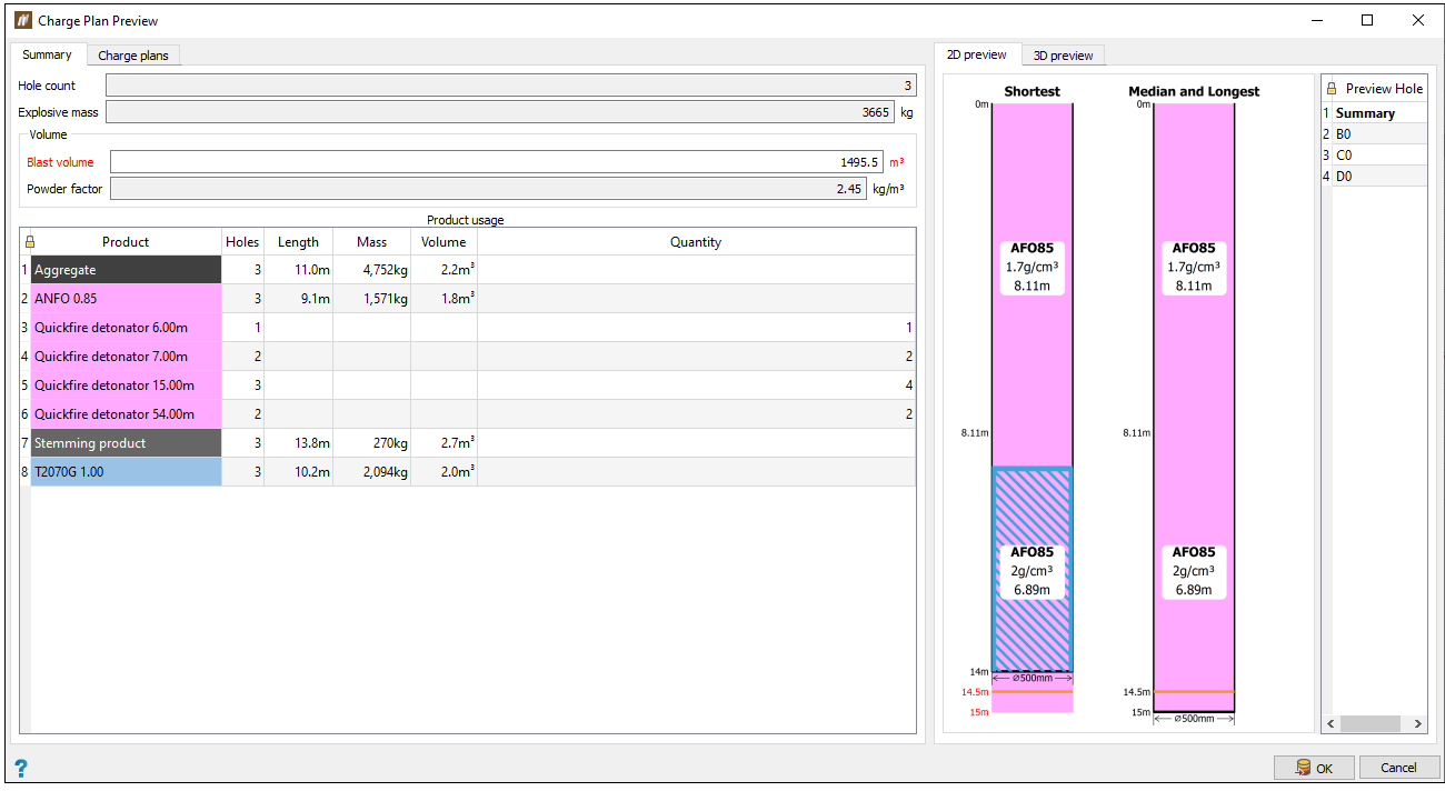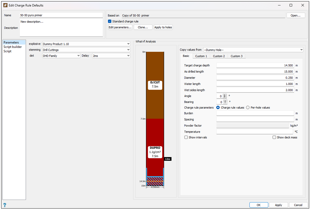 Click OK to save the edits. BlastLogic will update the Preview section and the Parameters tab of the Edit Charge Rule panel.