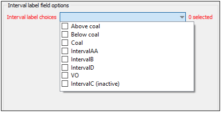 Enabling this option will fill a given interval with the selected product. In addition, above and below the interval can also be filled to the desired length. The intervals available to select are any Interval label charge rule parameter defined on the Parameters tab. The products available in the drop-down list are Air, Drill Cuttings, any Blast Product or Load table charge rule parameter defined on the Parameters tab. The Extend above and Extend below options fill above and below the interval by the given length, with the product or load table selected. Optionally, intervals with length less than some tolerance can be ignored by specifying a value greater than 0 for the Ignore intervals less than field.