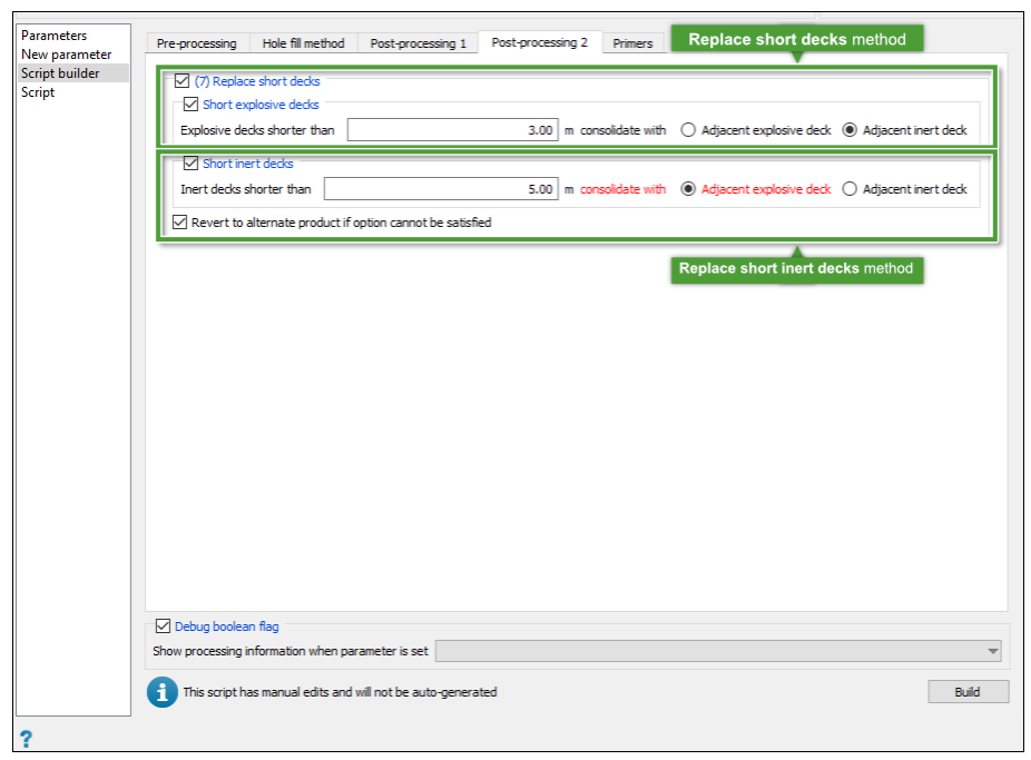 The Post-processing 2 subtab is used to combine and replace explosive and (or) inert decks based on height. It is also used to load primers according to specific conditions defined.