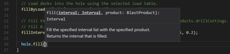 Microsoft Visual Studio Code is the preferred code editor, as it provides the most functionality. There is no additional work required in order for auto-complete to work as explained above. The charge rule parameters you provide will also be available through the use of the params object, i.e. params.dryChargeProduct.