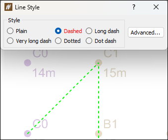 Once you finish defining the line style, click OK or Apply to apply these settings to the line object.