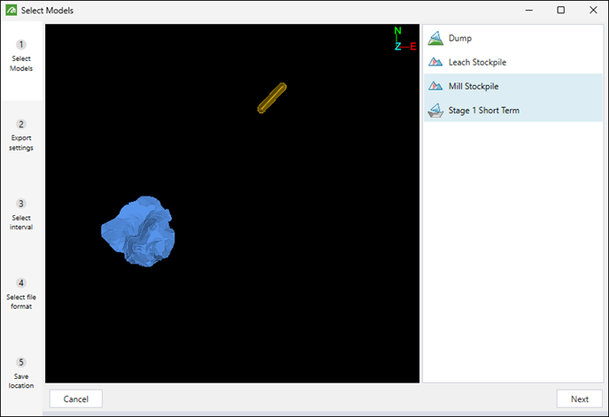 Select the models for which you want the end-of-period solids to be exported and click Next.
