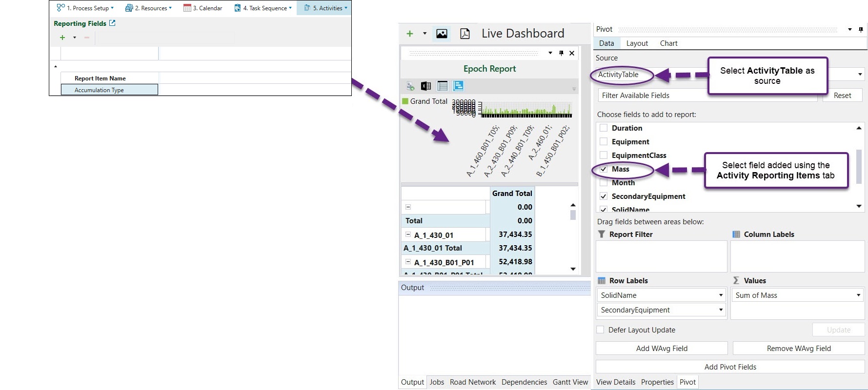 Epoch separates data into two separate pools: Material-based and Activity-based. This tab allows you to add attributes to the Activity-based data. Once the schedule has been generated, the newly created attributes can then be accessed during pivot reporting in the Live dashboard.
