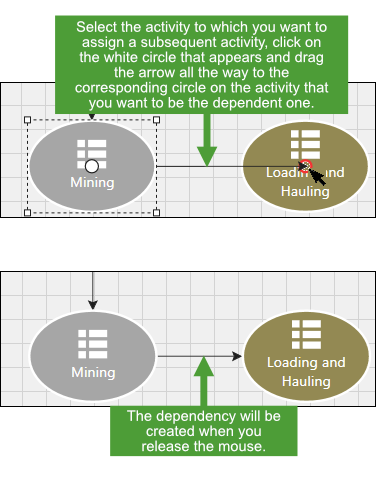 Drag the arrow all the way to the corresponding circle on the activity that you want to be the dependent one.