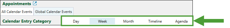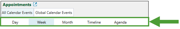 Tip: Click the Day, Week, Month, Timeline, or Agenda subtab to change the calendar view.