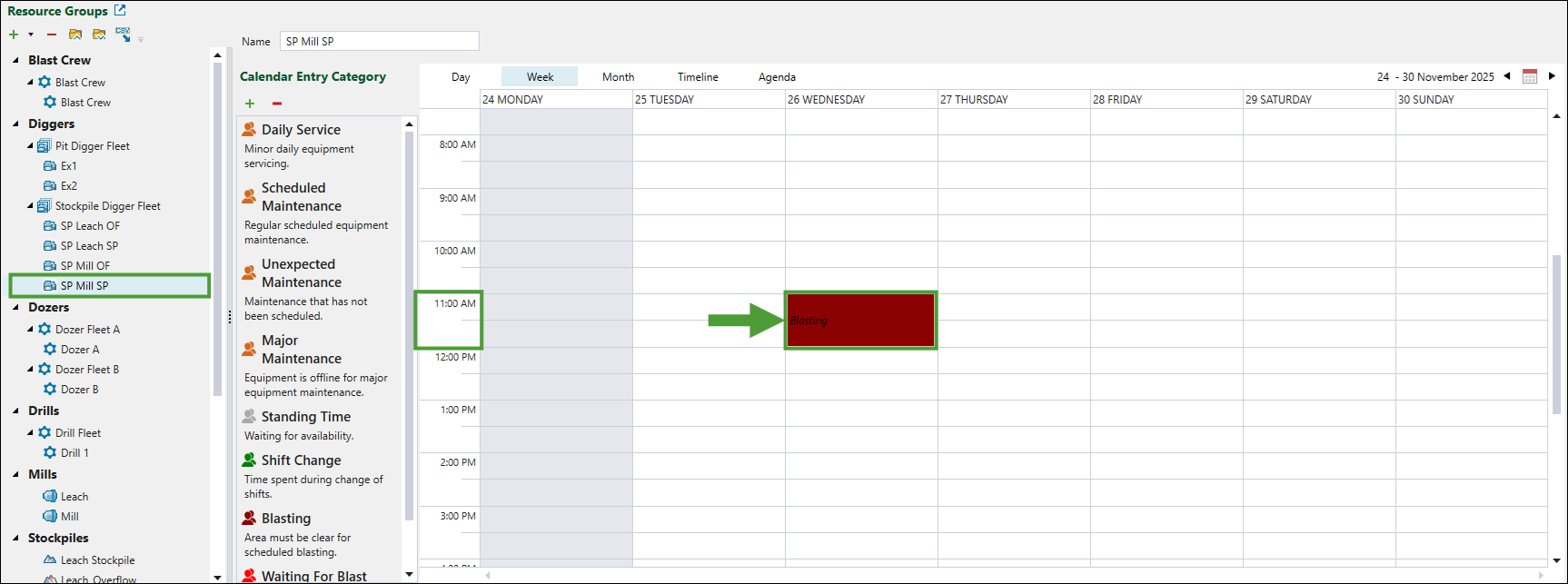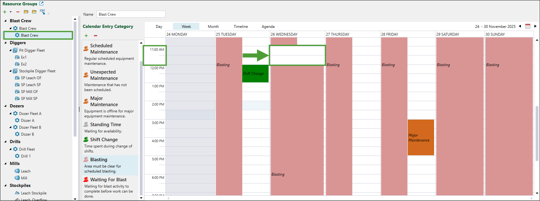 Resource Groups subtabSelected blasting crew