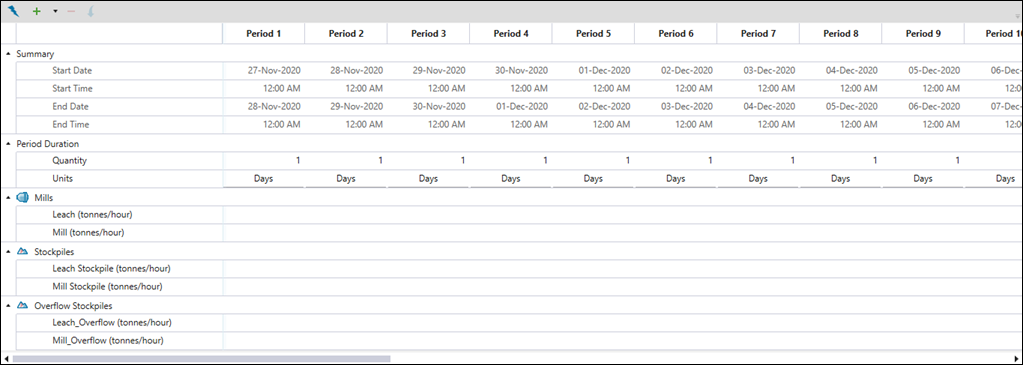 Adds multiple periods to the constraint calendar according to the number that you have entered. You can set a different duration for each added period by specifying the Quantity and Units fields.
