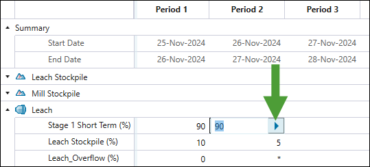 button to copy the properties of the current period to the subsequent periods until the end of the schedule.