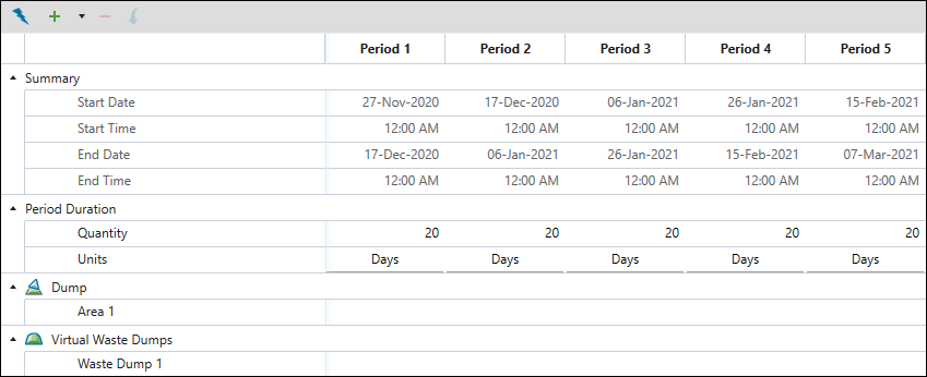 Use the Waste Area Accumulation constraint to place a maximum limit on the material that can be sent to each waste area per reporting period. Once a waste area reaches its accumulation limit for a given period, it will become unavailable until the next period begins and the material will be sent to another available waste area. If no waste areas are available, Evolution will display a warning, and the material will be sent to the overflow waste utility.