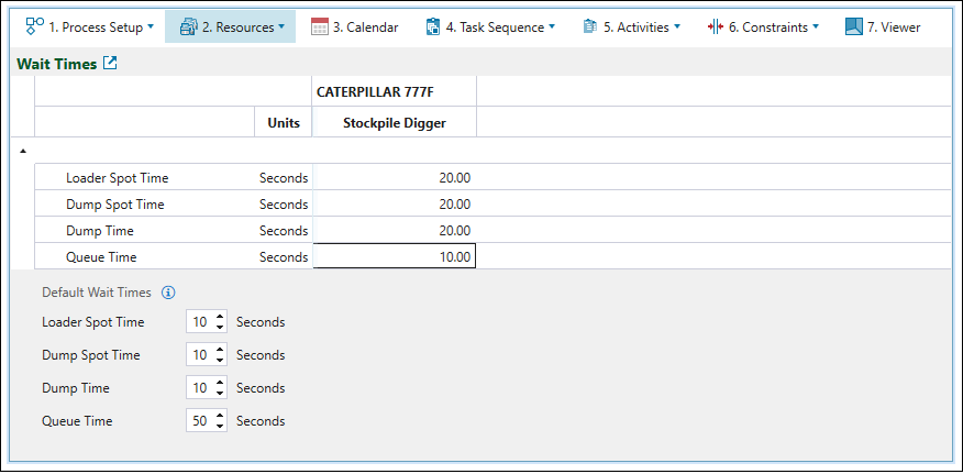 Wait Times tab to define times other than material transfer time.