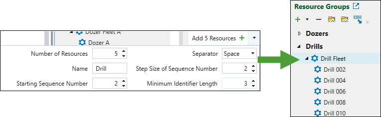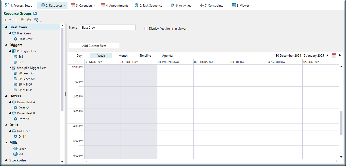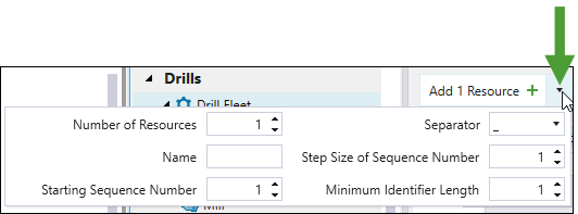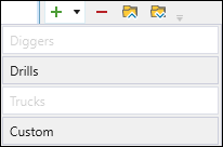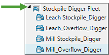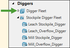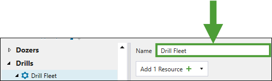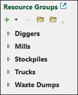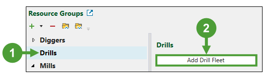 Note: You can only add fleets to equipment resource groups (Diggers, Drills, Trucks, and Custom). To add new items to process components’ resource groups (Mills, Stockpiles, and Waste Dumps), you have to add new process components and configure them in the