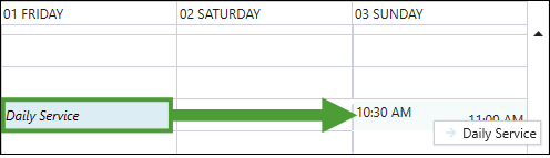 To change the time slot of a calendar entry, drag the entry to a different cell in the workspace.