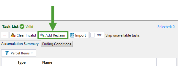 To add reclaim tasks to a task list, follow these steps: