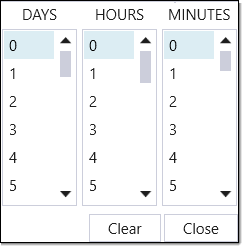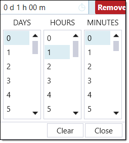 and using the drop-down duration panel. Click Close to save the selected duration.