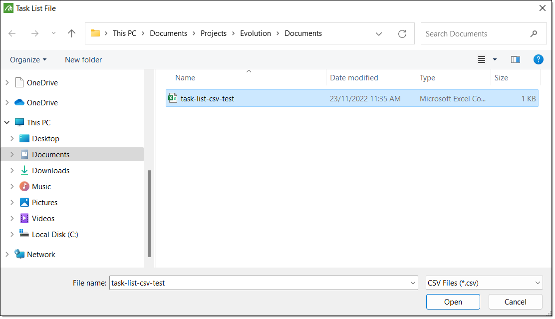 .csv) from the Task List File explorer.