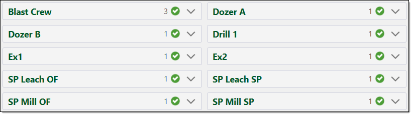 Resources. This section contains a resource field for each resource in the setup. In the resource fields, you can view the task lists allocated to the resource.