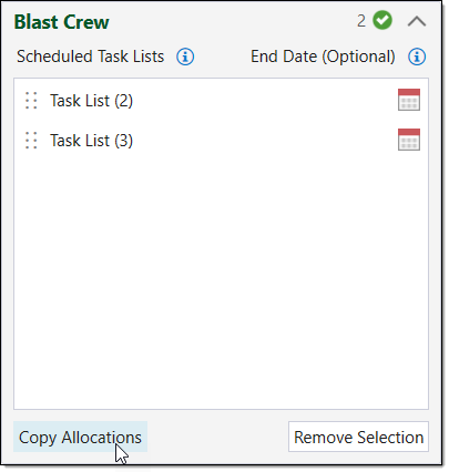 The Copy Resource Allocation panel will appear.