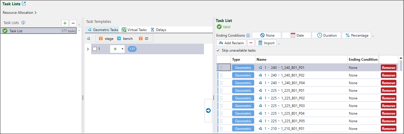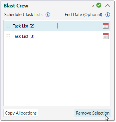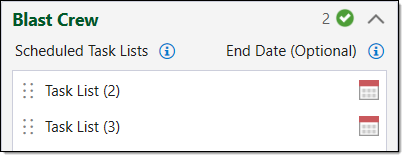 In the image below, Task List (2) appears before Task List (3). In this case, the Blast Crew will carry out the tasks in Task List (2) before they carry out the tasks in Task List (3).