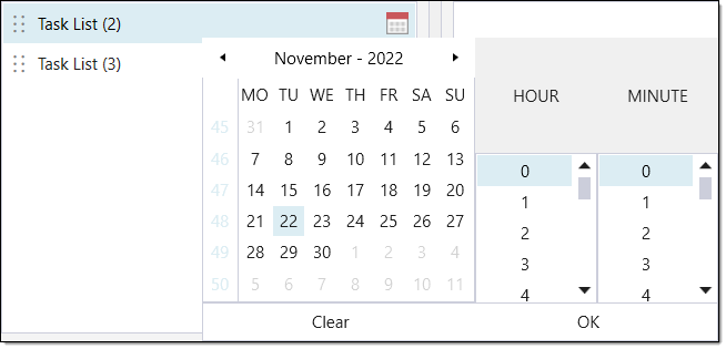 (Calendar) icon corresponding to the desired task list. The calendar drop-down will appear. -