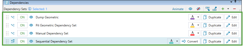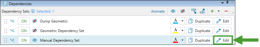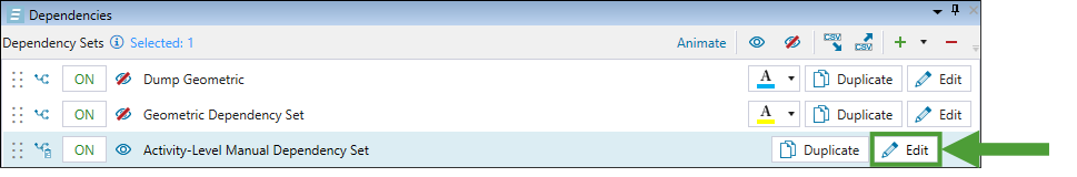 Tip: To rename a dependency set, double-click on its name in the Dependency Sets list and enter the new name.
