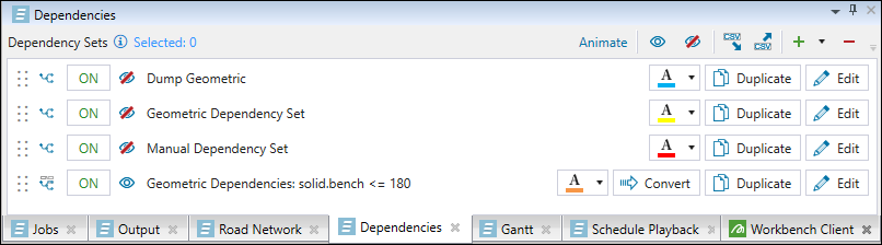 Displays all dependency sets that were generated for the models in your setup. ![]() |