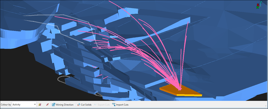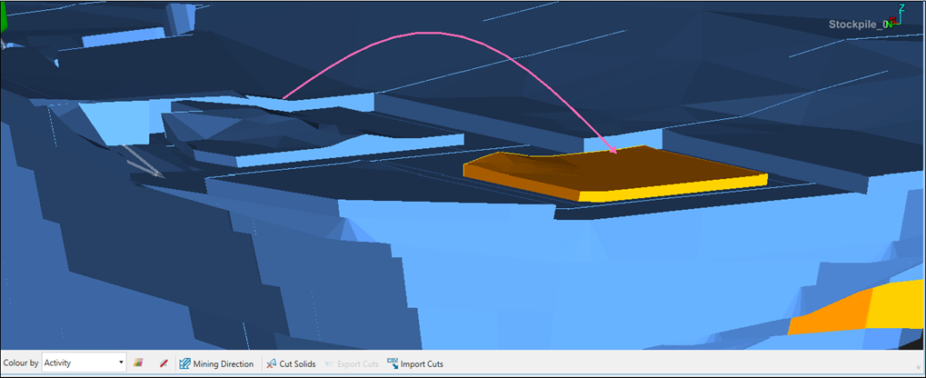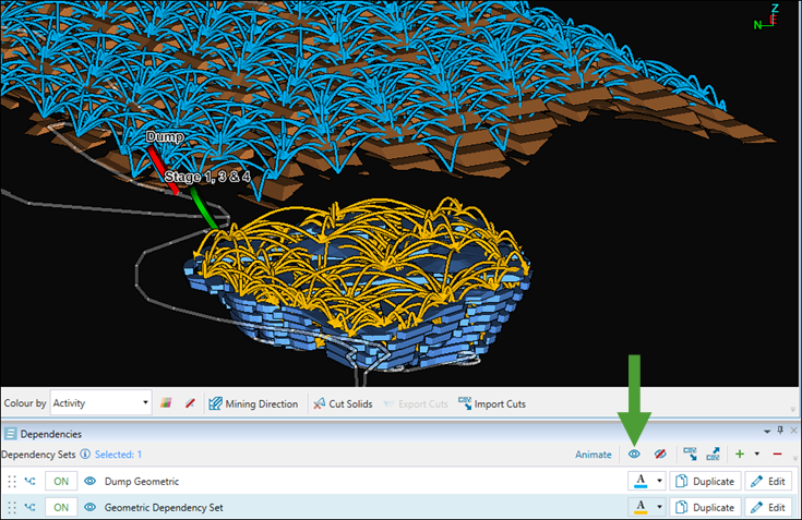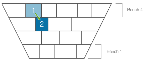 The image below is an example of a geometric dependency where Solid 1 must be mined before Solid 2 due to their relative location.