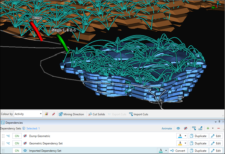 Tip: To achieve a realistic mining sequence, add geometric dependencies to each model in your setup.