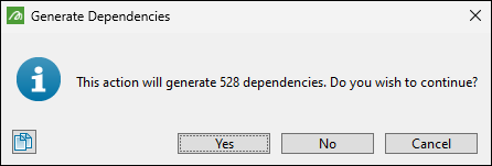 Click OK. Evolution will display the Generate Dependencies dialog box informing you about the number of dependencies to be created. Click Yes to proceed with dependency generation.