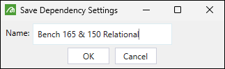 Optionally, you can save the relational dependency set that you have created by clicking Save at the bottom of the Relational Dependency Generator panel. Evolution will display the Save Dependency Settings panel for you to enter the name of the dependency.