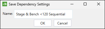 Save the sequential dependency filter that you have applied by clicking Save at the bottom of the Sequence Generator panel. Evolution will display the Save Dependency Settings panel for you to enter the name of the filter to be saved.