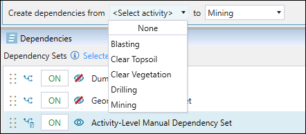 Evolution will add an Activity-Level Manual Dependency Set to the Dependencies tab at the bottom of your screen. Click Edit to configure it.