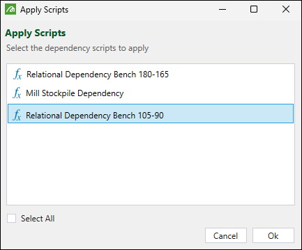 In the Apply Scripts panel, select the scripts you want to use and click Ok.