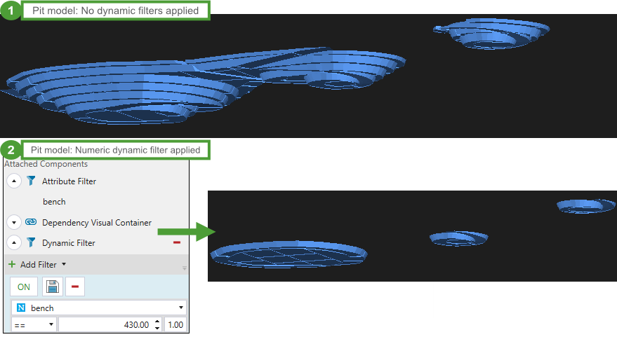 Allows you to customise the view of your model by applying a numeric value from the drop-down. In the example below, the model was filtered by applying bench