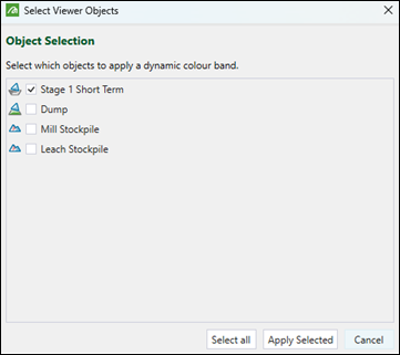 Add Dynamic Colour. - Select the models to apply the dynamic colour to from the panel and click Apply Selected.