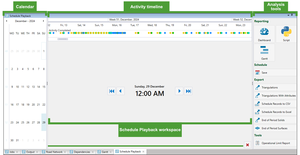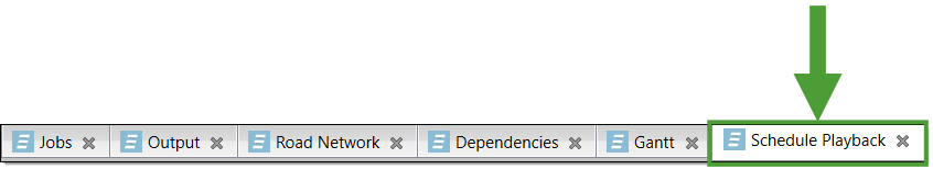 The Schedule Playback tab allows you to view and interact with the schedule. To open this tab, select the Schedule Playback tab from the report window tabs group in the