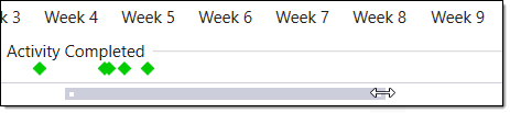 Epoch will mark the point at which an activity is completed as a milestone. These milestones appear as coloured diamond markers in the activity timeline. -