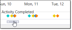 The activity timeline allows you to track the completed activities in your schedule. Each diamond marker represents the completion of an activity. The marker colour corresponds to the activity colour set in the Activity Sequence page. For more information, see Activity Sequence.