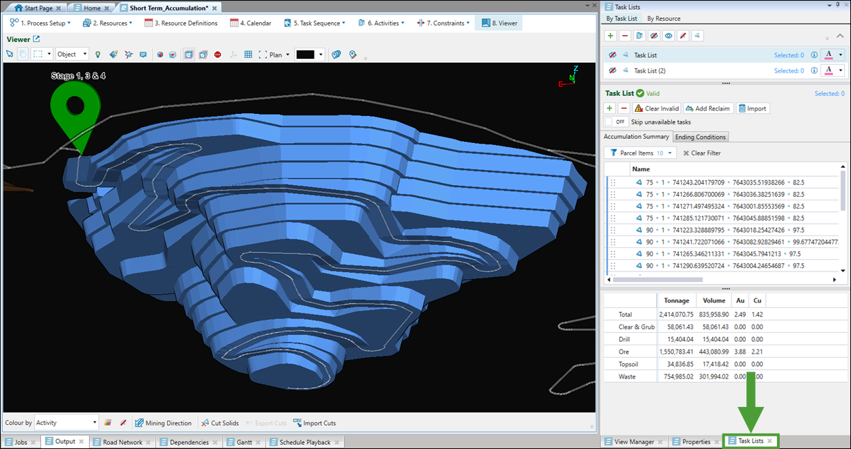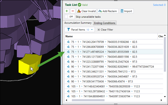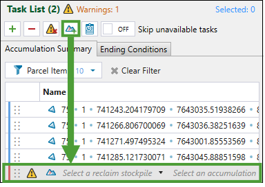 Optionally, add reclaim tasks to the task list. Reclaim tasks allow you to manually schedule stockpile reclaims.