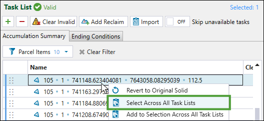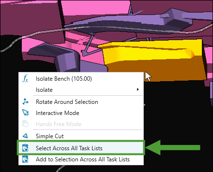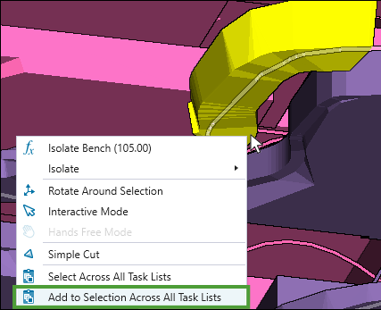 Select Across All Task Lists from the context menu to clear any previous selections and select all tasks corresponding to this solid across all task lists.