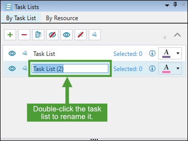 Tip: Double-click on the task list to rename it. You can rename task lists both in the By Task List and By Resource subtabs. |