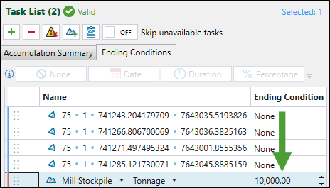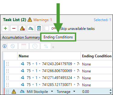 Optionally, add ending conditions to the tasks. The equipment will remain assigned to these tasks until the specified conditions are met. To specify ending conditions, proceed as follows:
