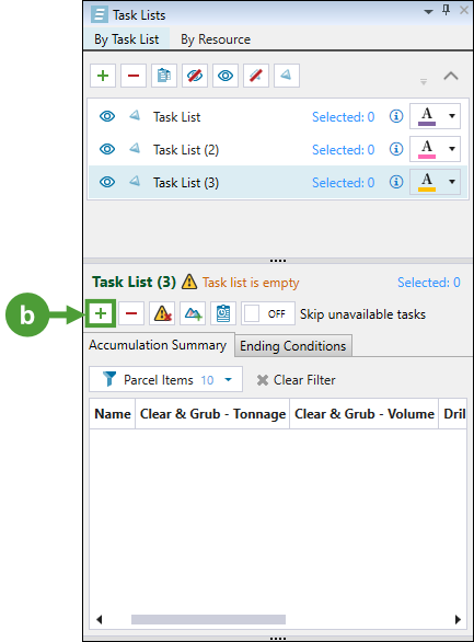 Select how you wish to view the task lists. You can select from the By Task List or By Resource tabs in the Task Lists Tabs area. By default, Epoch displays the By Task List tab.