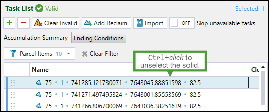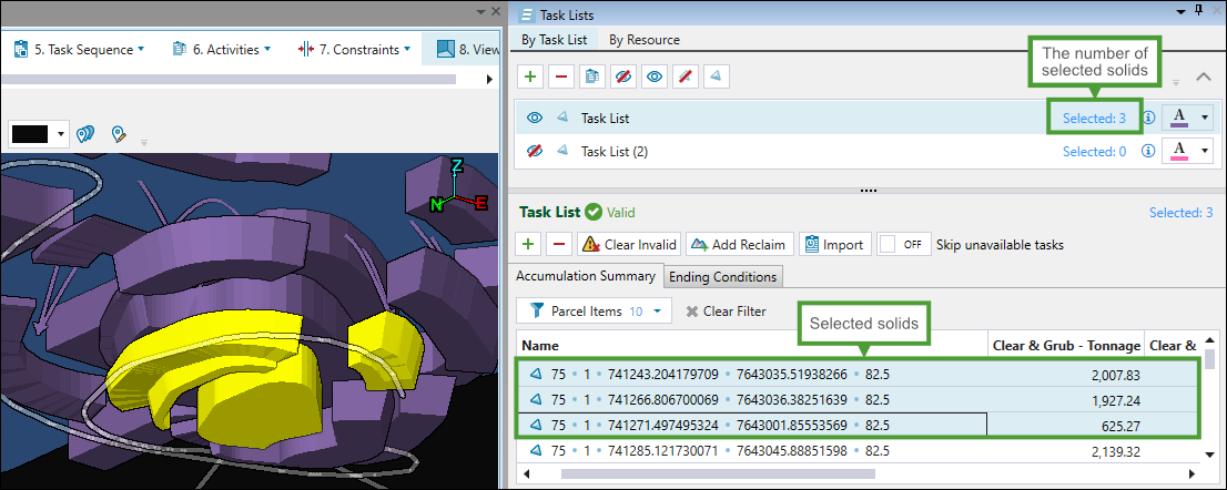 Tip: Select multiple solids by Shift+click or Ctrl+click. Evolution will indicate the number of the selected solids for the given task list in the By Task List subtab.