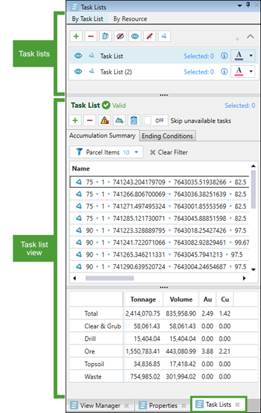 Select the Task Lists tab from the View Manager tabs. The Task Lists tab will appear.