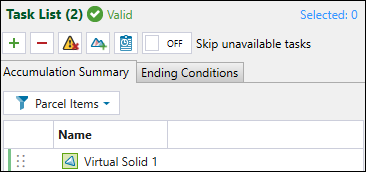 Drag the required virtual solid from the Tasks panel into the required position in the task list field.