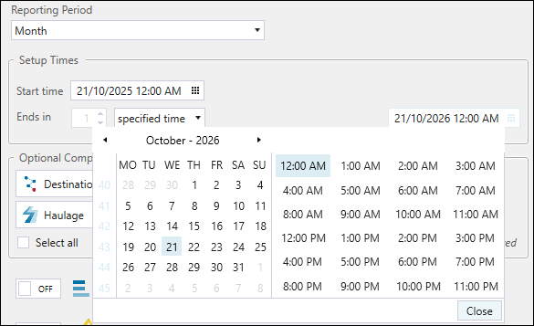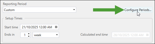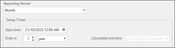 After selecting the reporting period in your setup, specify the setup time frames as follows: