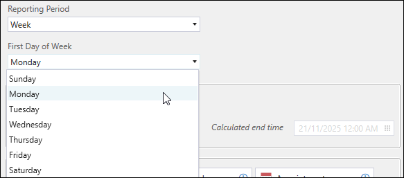 If you have selected Week as the reporting period, use the drop-down to choose which day of the week will be reported as the first.