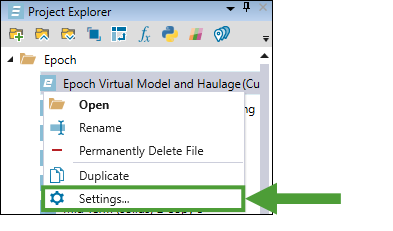To edit an Epoch setup, right-click on it in the project explorer and select