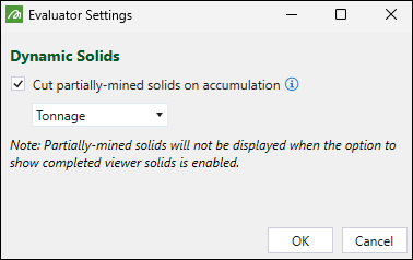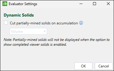 Using the drop-down, select the accumulation type based on which the partially-mined solids will be cut.