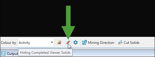 (Hiding Completed Viewer Solids) option in the viewer. With this setting enabled, Evolution will automatically apply partial solid cutting to all pit solids.